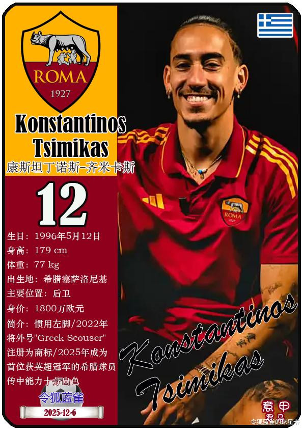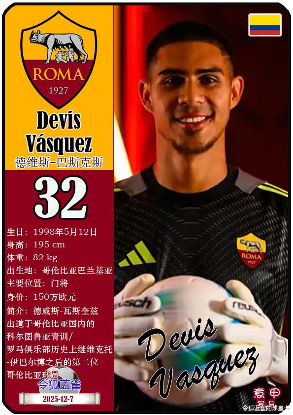 意甲罗马足球俱乐部成立于1927年,距今已有98年历史。截至2025年12月7日,球队主教练是吉安-皮埃罗-加斯佩里尼,队内拥有球员阿尔特姆-多夫比克、洛伦佐-佩莱格里尼、埃文-弗格森等。本期以球星卡的形式展示目前意甲罗马足球俱乐部的25名球员(按球衣号码排序):