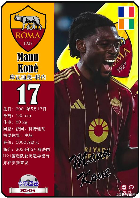 球星卡(意甲): 罗马足球俱乐部25人一览(25/26赛季)