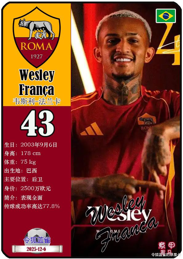 你的位置:一天赚5000的偏门 > 新闻动态 > 球星卡(意甲): 罗马足球俱乐部25人一览(25/26赛季)